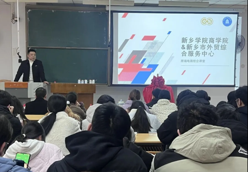 揭牌仪式后,新乡市外贸综合服务中心总经理王震率先登台,以“外综服平台全流程解析”为主题,深度剖析采购、物流、通关、退税等12项关键环节的一站式解决方案,让同学们直观了解外贸服务的核心逻辑。张珈宁讲师系统解析了不同平台的规则差异与选型策略,结合中心智能选品中心的运营经验,为同学们梳理跨境电商的入门路径与成长方向。课堂上,同学们专注记录、踊跃提问,围绕平台合规风险、海外仓运营等问题与讲师深入交流,展现出对跨境电商领域的浓厚兴趣与专业思考。