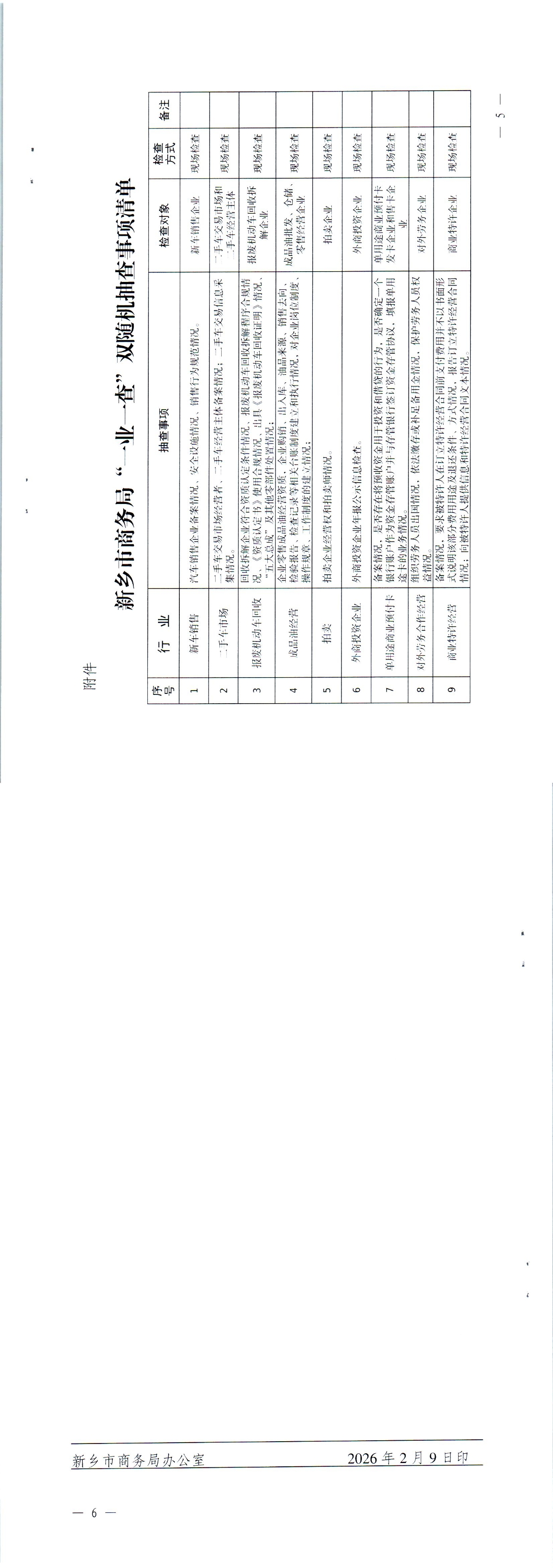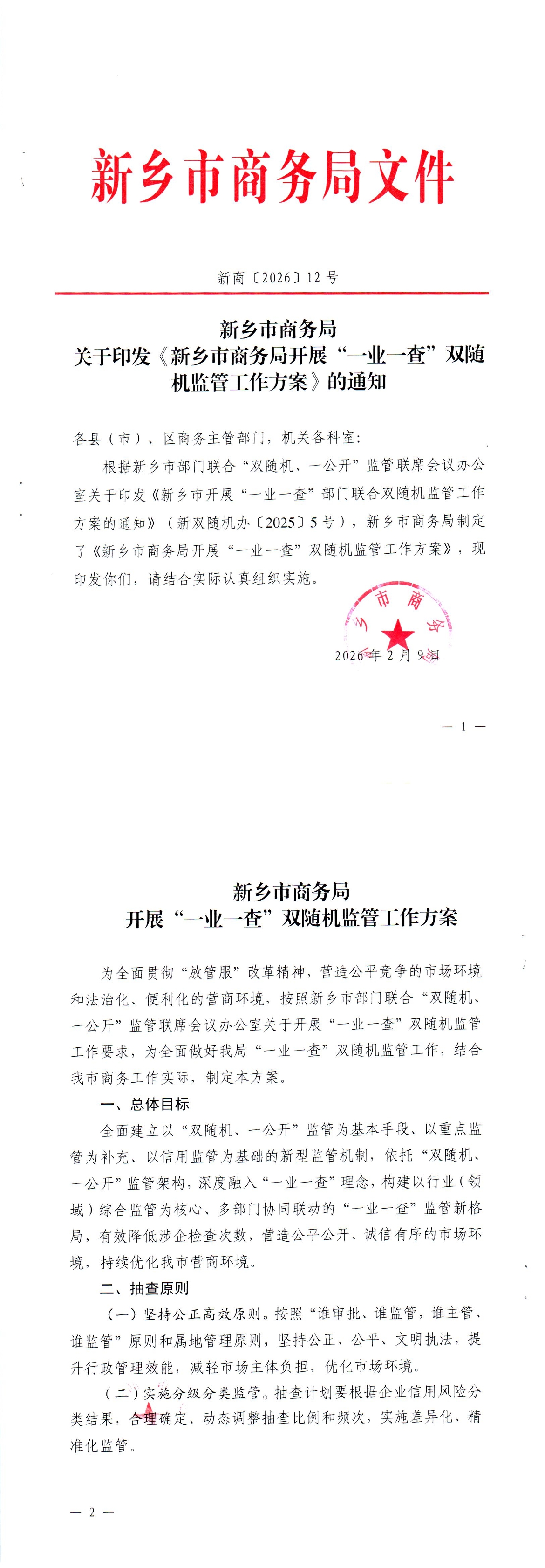 关于印发《新乡市商务局开展“一业一查”双随机监管工作方案》的通知