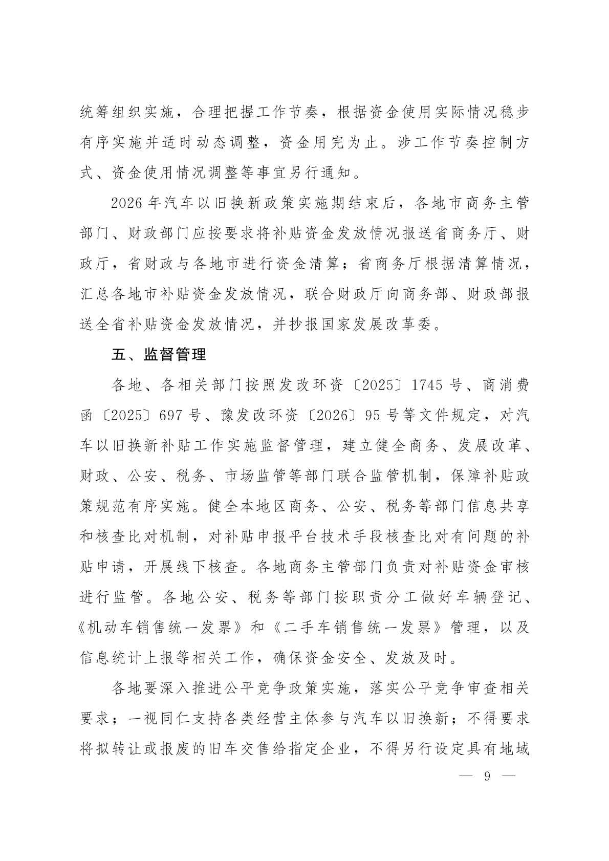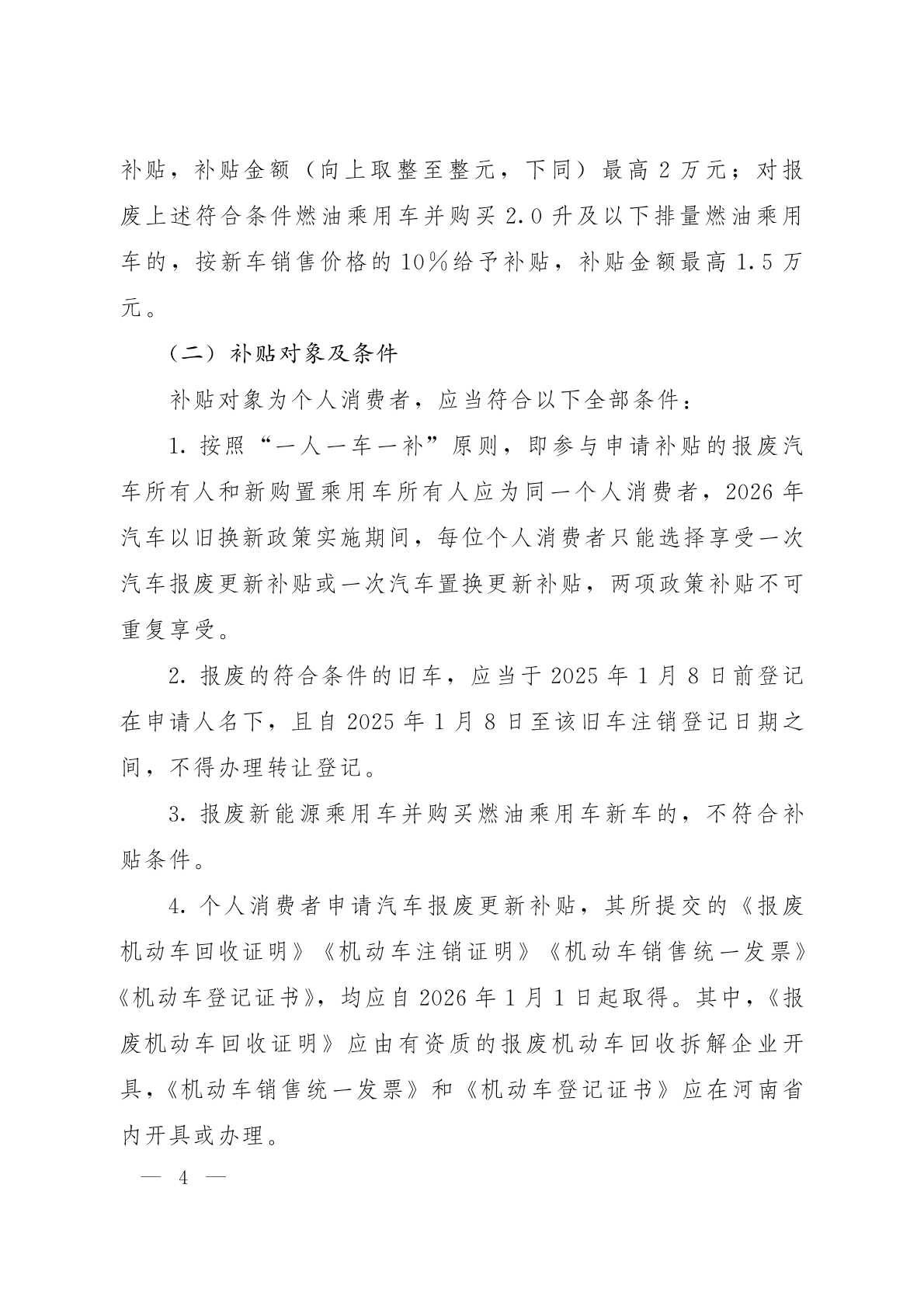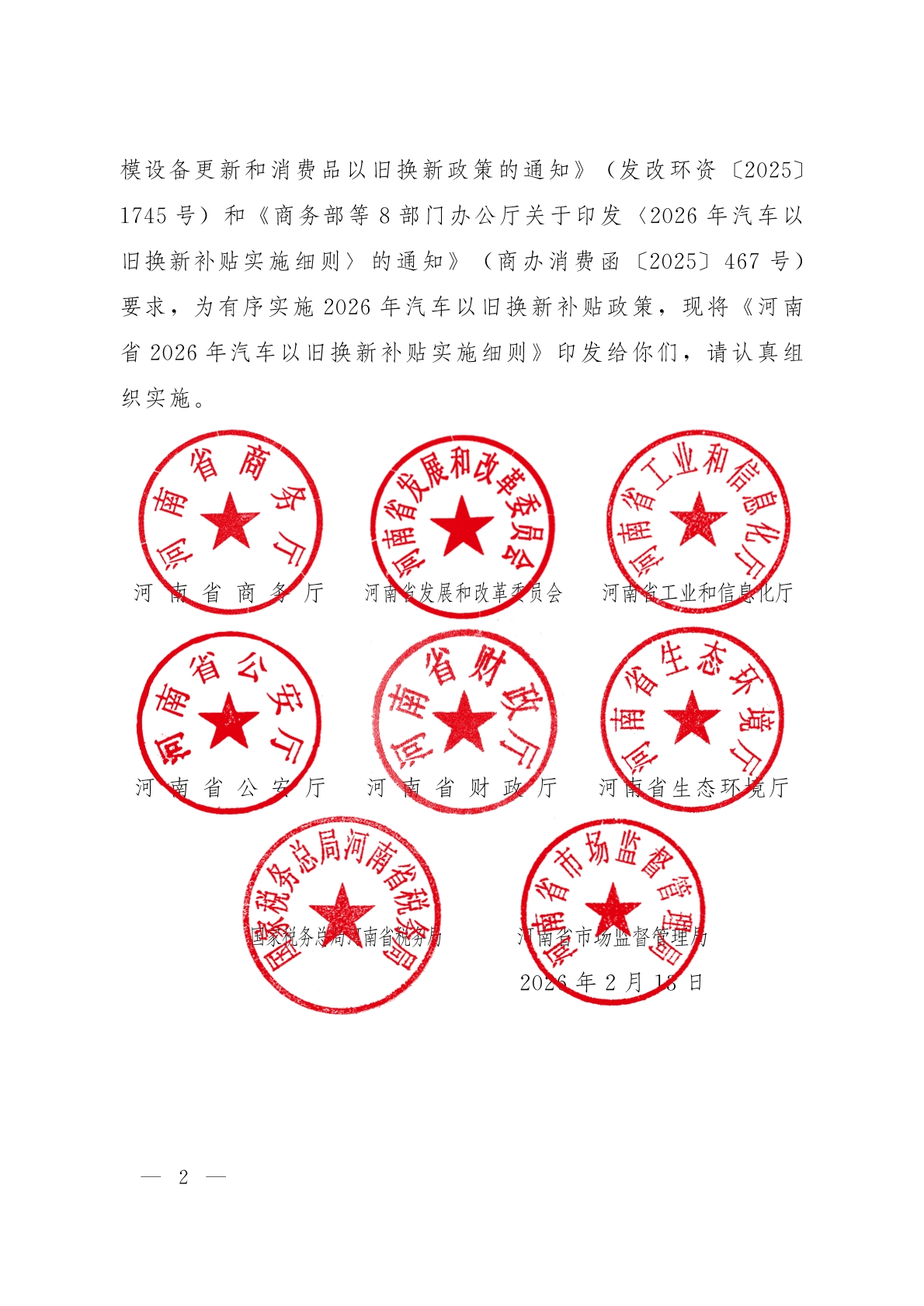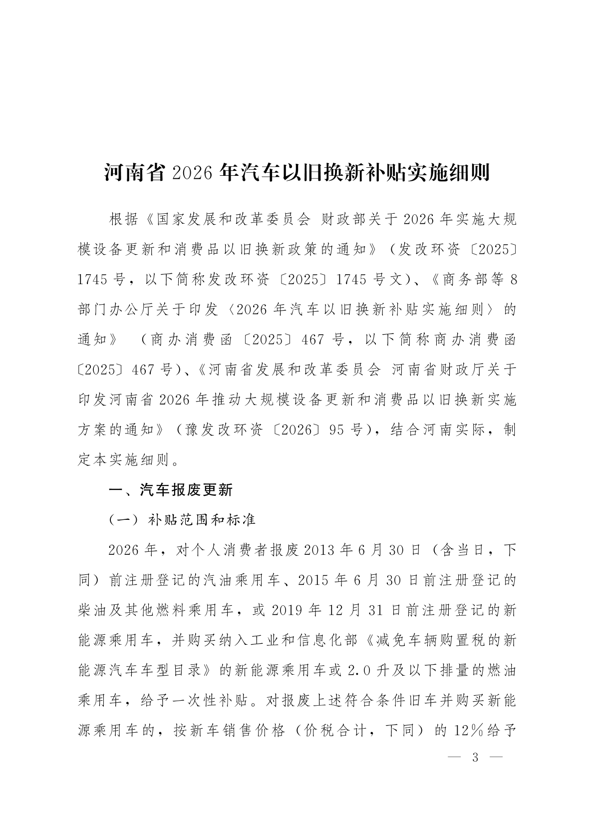 河南省商务厅等8部门关于印发《河南省2026年汽车以旧换新补贴实施细则》的通知