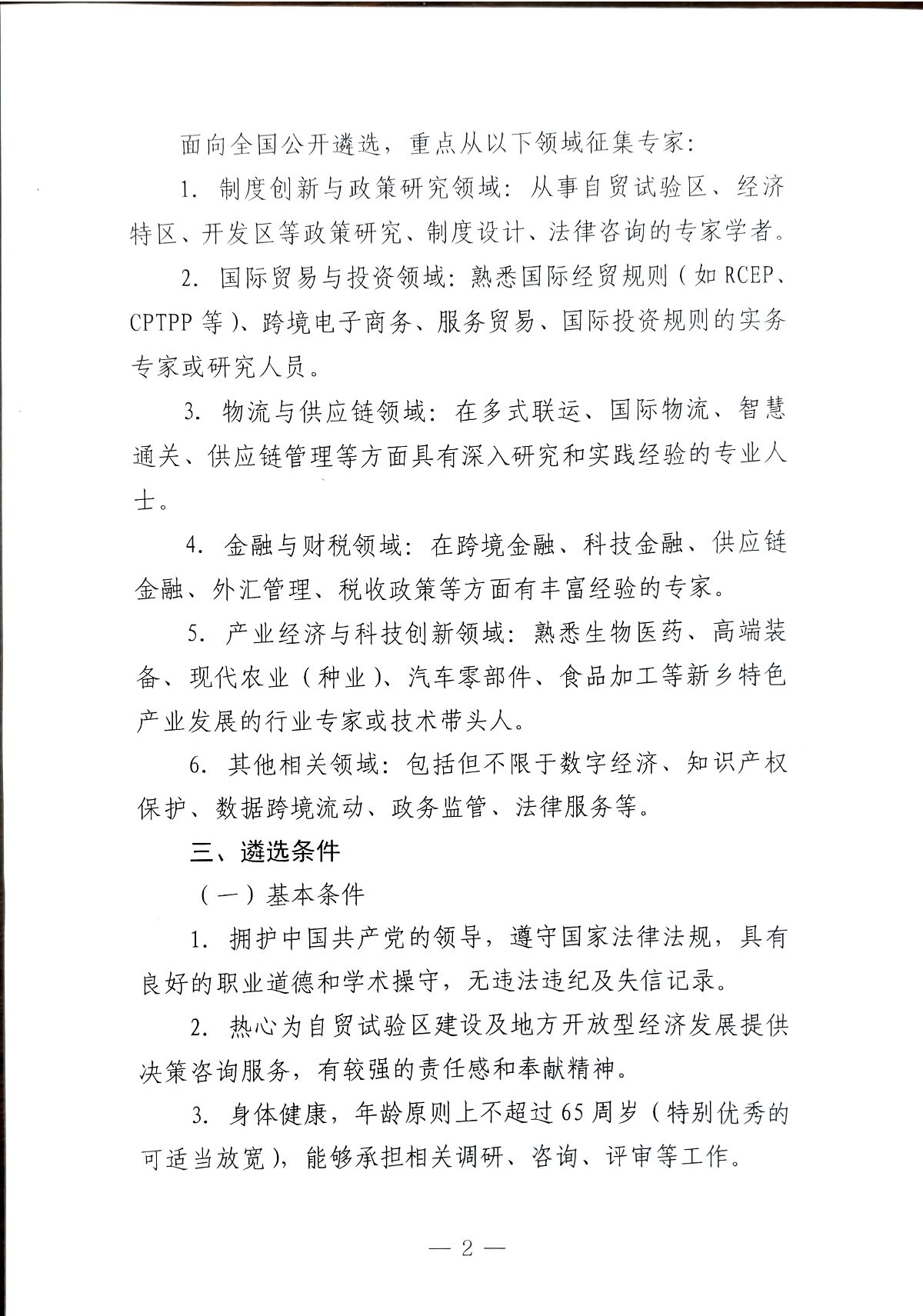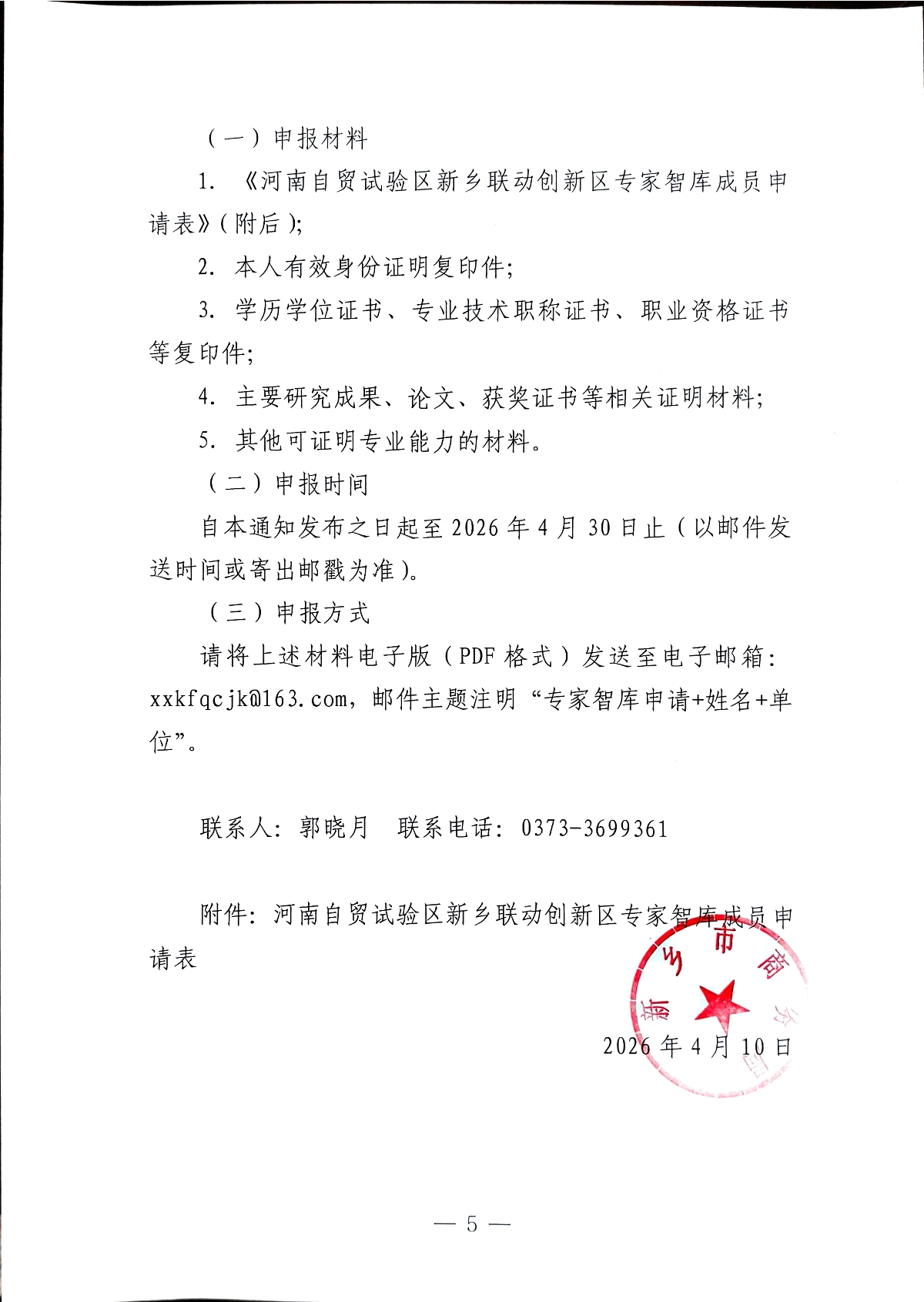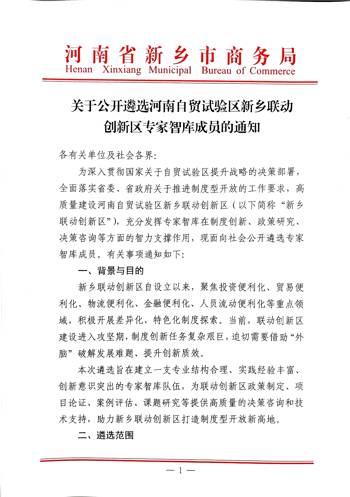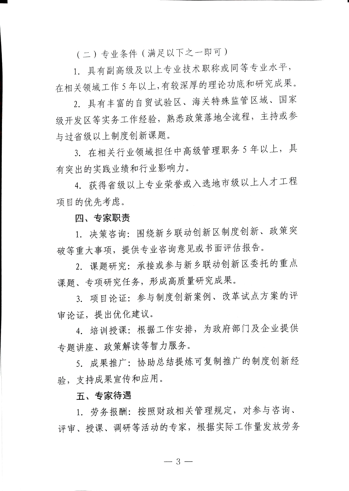 关于公开遴选河南自贸试验区新乡联动创新区专家智库成员的通知