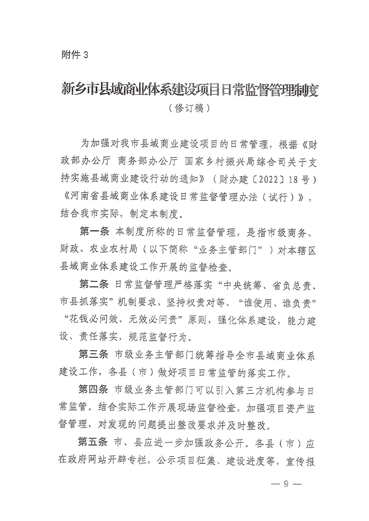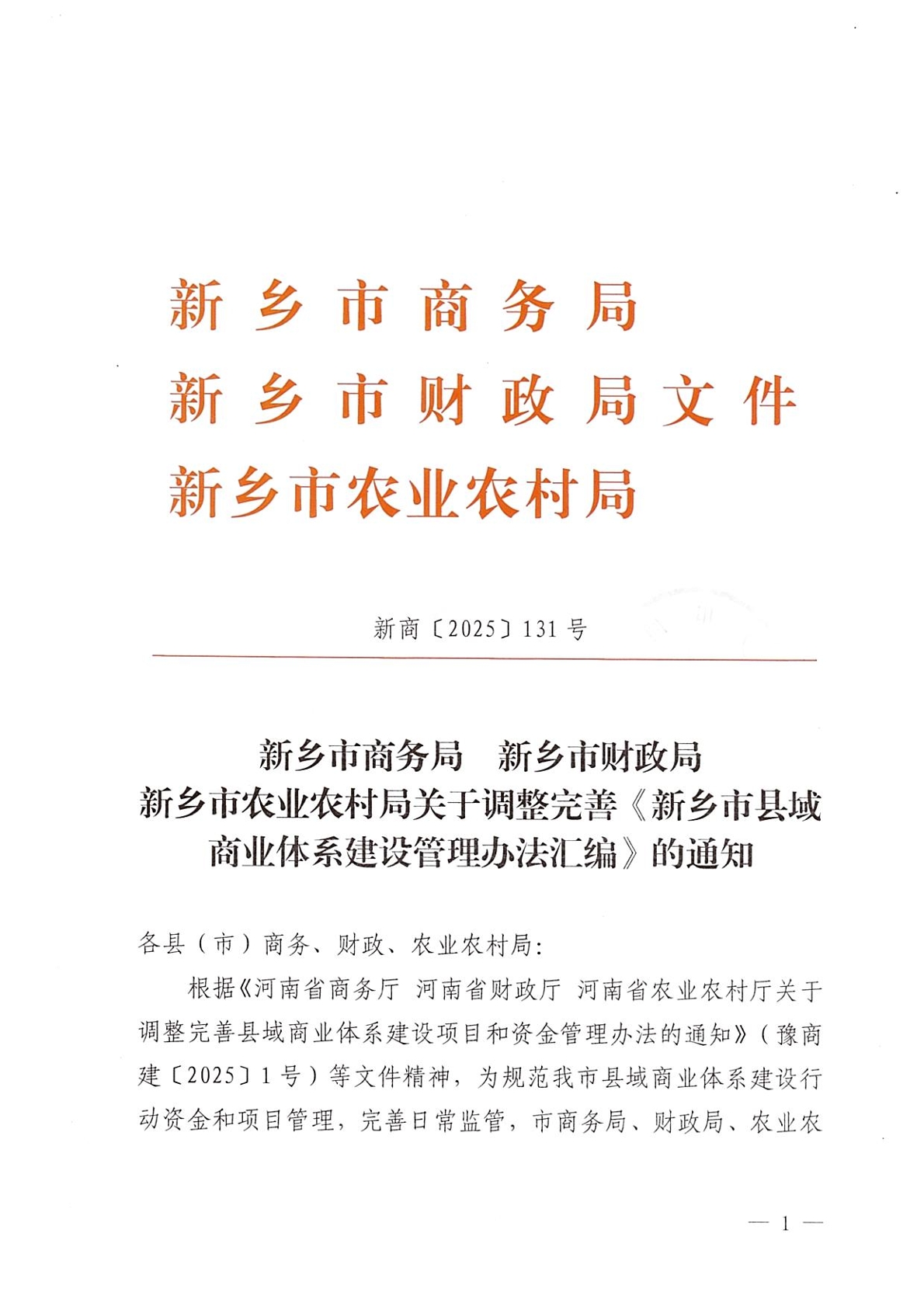 关于调整完善《新乡市县域商业体系建设管理办法汇编》的通知