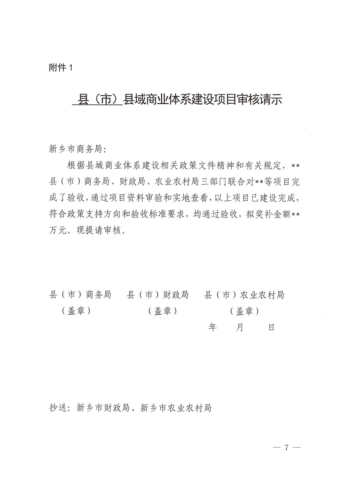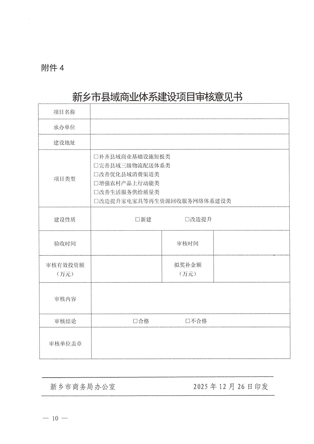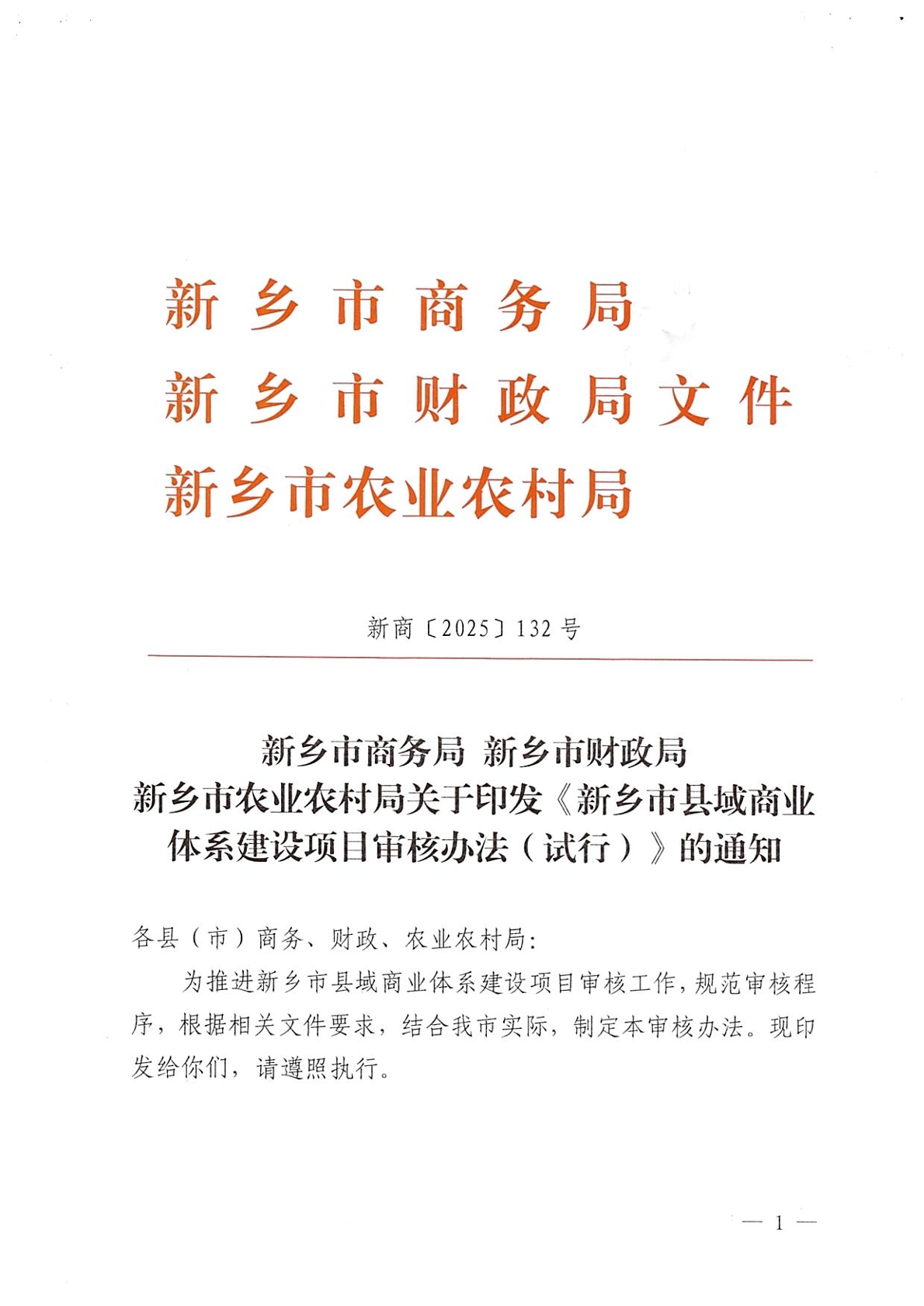 关于印发《新乡市县域商业体系建设项目审核办法(试行)》的通知
