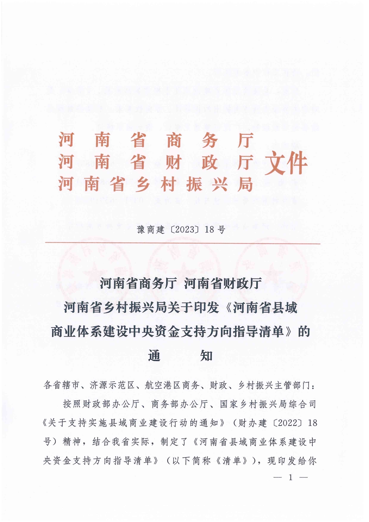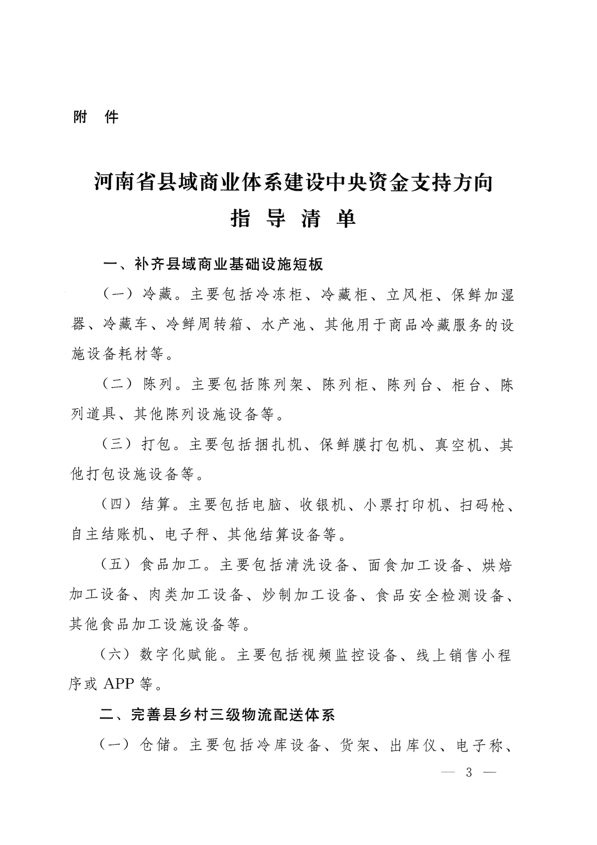 河南省商务厅等三部门关于印发《河南省县域商业体系建设中央资金支持方向指导清单》的通知