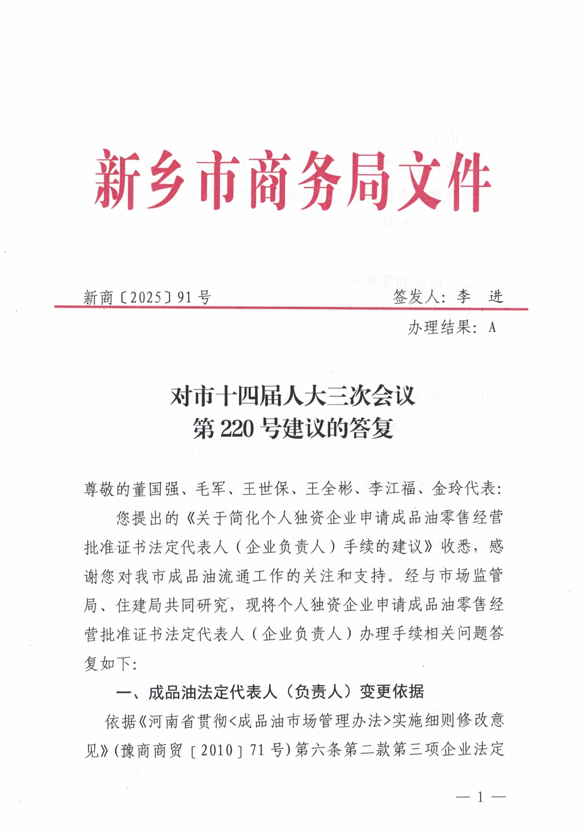 新乡市商务局对市十四届人大三次会议第220号建议的答复