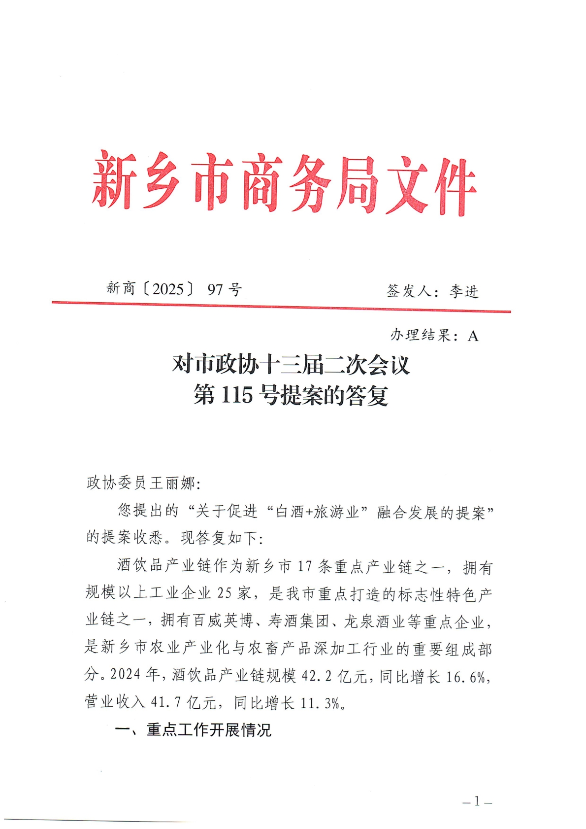 新乡市商务局对市政协十三届三次会议第115号提案的答复