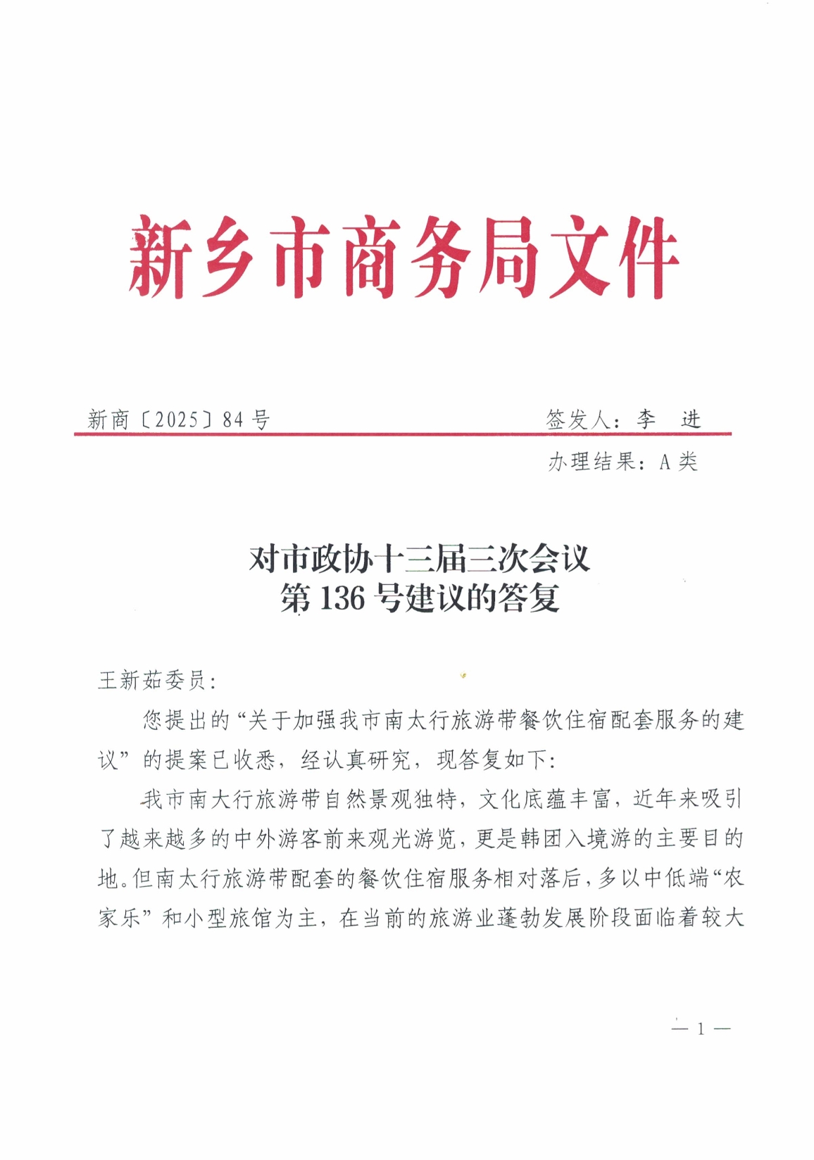 新乡市商务局对市政协十三届三次会议第136号提案的答复